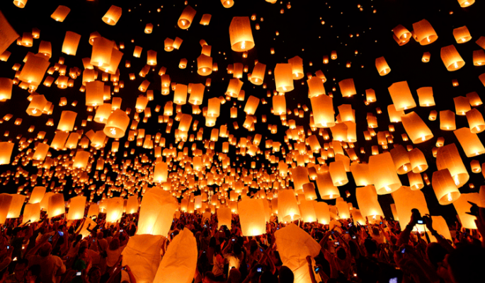 Những chiếc đèn lồng tượng trưng cho mọi người buông bỏ một năm đã qua và chào đón năm mới nhiều may mắn.